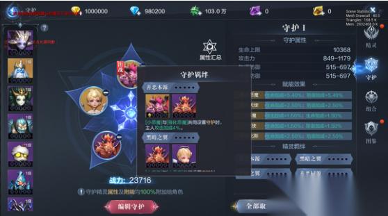 精灵守护的实战价值主要体现在属性转化、羁绊激活与附能效果三方面。守护位精灵的基础属性会100%附加给角色,而附能属性如小天使的生命加成或小恶魔的攻击加成则会按比例提升。羁绊系统要求特定组合的精灵同时守护,例如小恶魔与强化恶魔组合可激活4%攻击加成的善恶同源羁绊,星级越高加成越显著。不同阵营精灵集齐后还能解锁阵营专属加成,这要求玩家在资源有限时优先培养高星核心精灵并规划羁绊组合。
