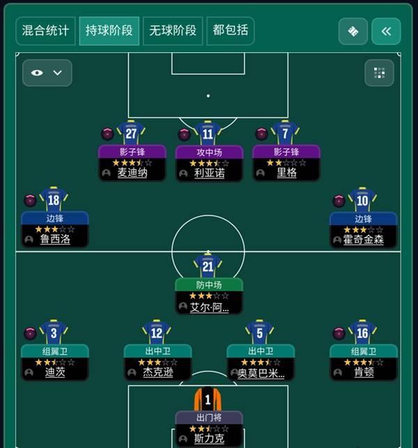 需要注意的一点是,由于不断尝试穿透球,你很少能获得超过50%的控球率。