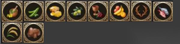 草药、豆类、蜂蜜、橄榄油、葡萄、葡萄酒、水果、野味、鱼类、杂骨、粘土