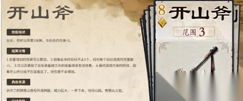 云锦袍作为典型的防御向装备,具备提升装备栏上限+2的被动效果。当玩家装备区已满五件时,若继续装备云锦袍,则会自动移除最早置入的一张装备牌,体现出“以退为进”的战略思维。该装备支持与其他类型装备共存,可构建包含物理防御、火伤减免及闪避能力的多重防护体系。同时兼容多种搭配方案,适用于主将位角色或需要长期作战的阵容配置。另一款代表性装备——开山斧,则侧重于攻击输出。其基础属性增强了攻击范围与暴击伤害,专属技能“地裂”允许使用者在打出【杀】时弃置一张手牌,使此次【杀】的伤害+1,且此增益可叠加。凭借高额爆发与群体压制能力,开山斧能够在关键时刻实现清场效果,是强攻流派的重要选择。