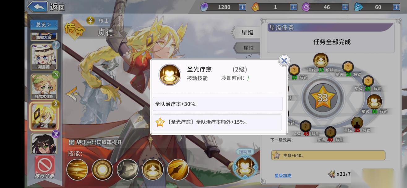 升星能提升全体治疗且贞德技能为打boos主力所以优先建议升星拉满贞德