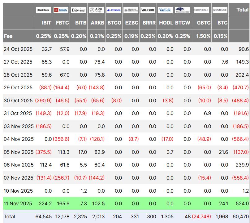 比特币ETF强势反弹,单日资金流入5.24亿美元,创下市场崩盘以来最佳纪录。