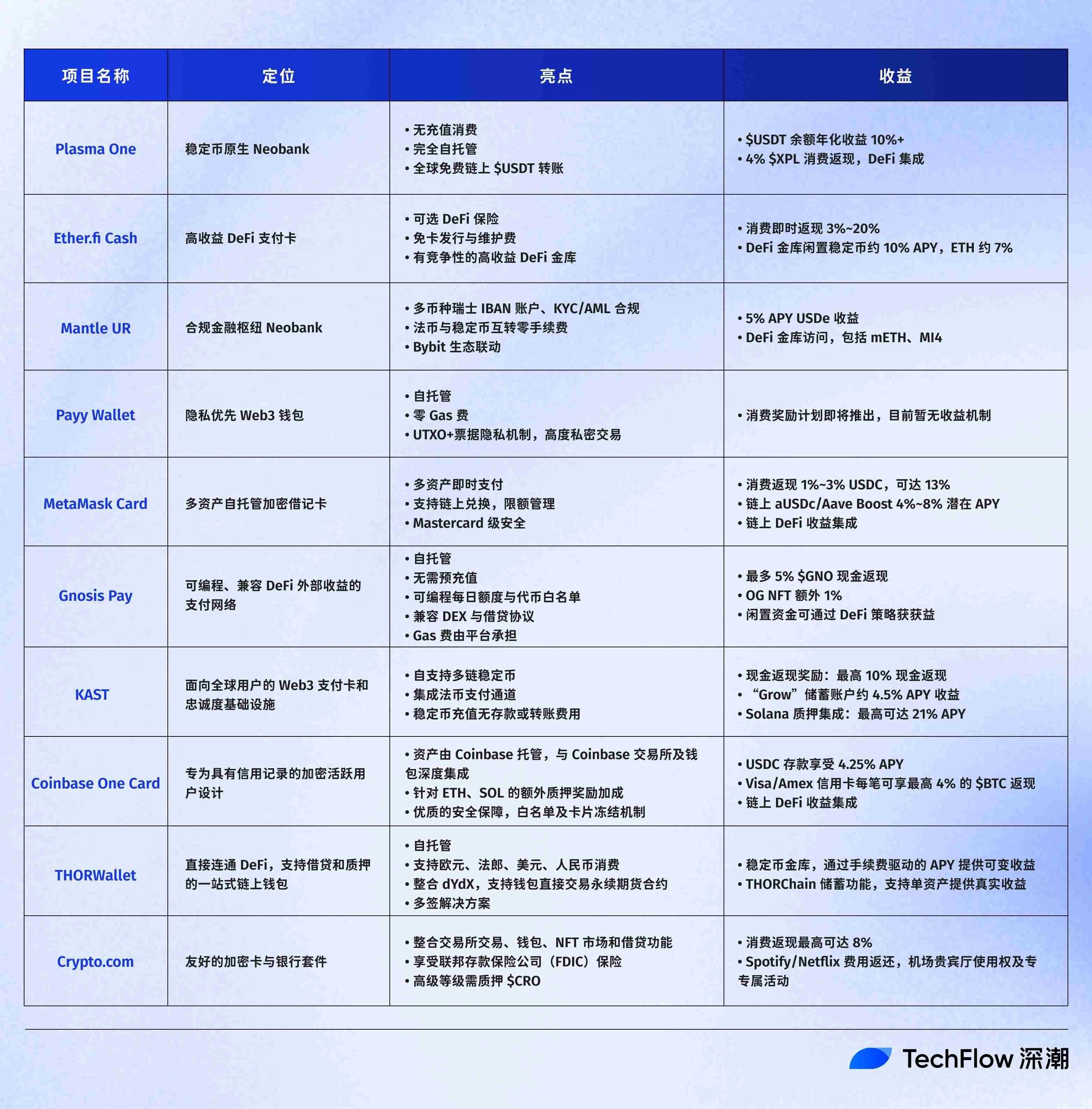 加密返现奖励:每笔消费可赚取 1%-3% USDC,结合链上合作伙伴奖励,返现最高可达 13%。