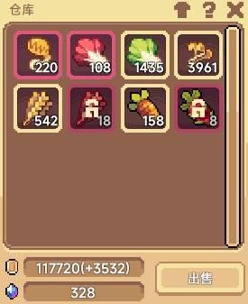 仓库位于农场最中间的位置,所有作物都可以在里面查看。