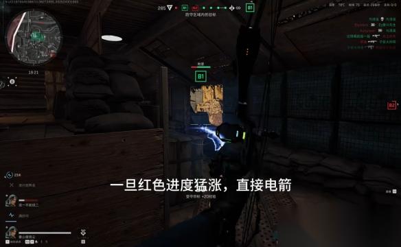 同时像是2.3.1的提到的单行道,进攻方也可以反过来使用电箭的弹射及范围伤害,打乱敌人阵型,让其无法组织起有效的架枪防守。