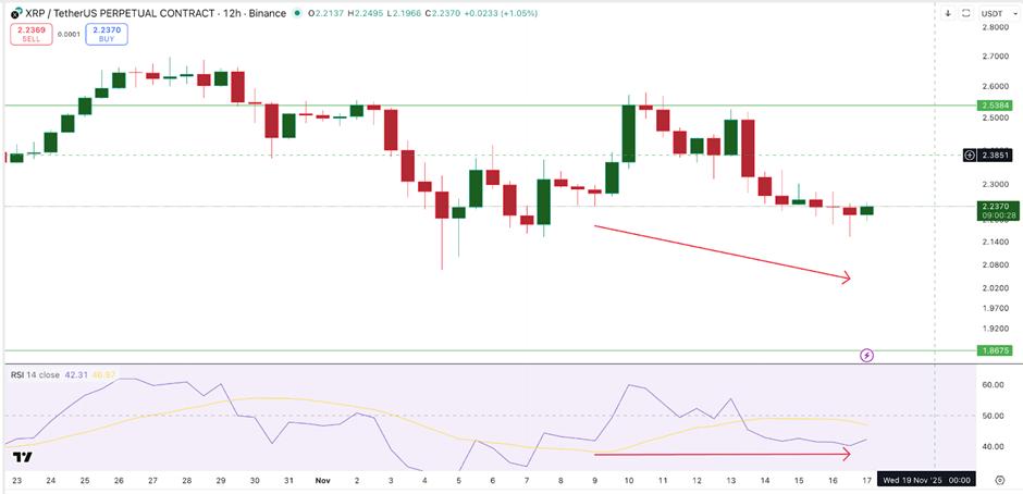 11月9日至11月16日期间,XRP价格创下新低,但RSI指标却创下新高。