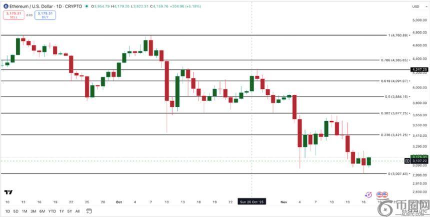 为了验证这一点,我们首先需要分析基本结构。以太坊价格已连续数日在3100美元的支撑位上方企稳。