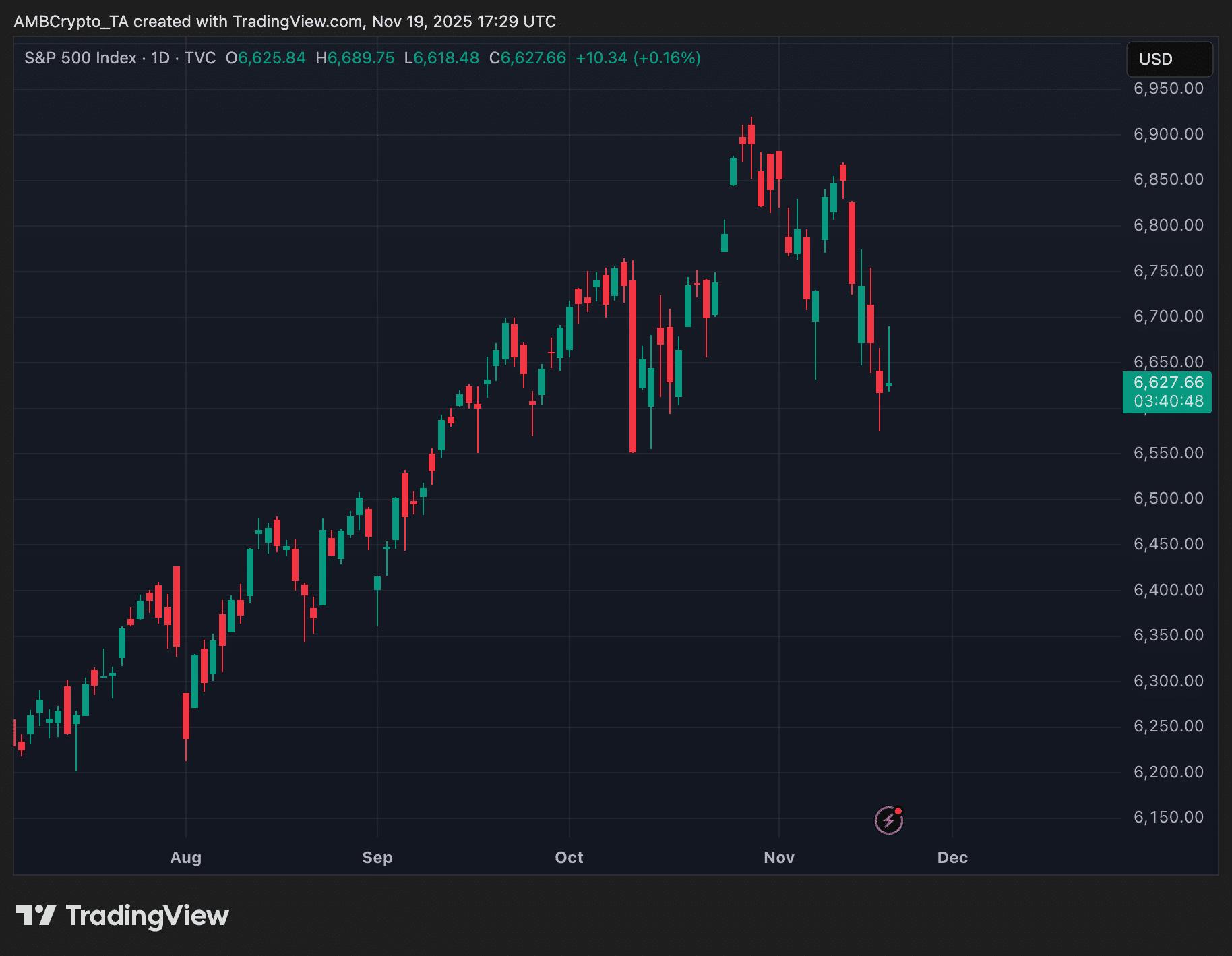 买家在6600点附近入场,表明机构投资者的需求依然强劲。该指数目前报6627.66点,当日上涨0.16%。