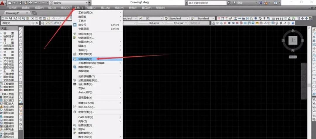 点击顶部菜单栏 【工具】 → 【块编辑器】(或直接输入命令 BEDIT)。系统弹出 “编辑块定义” 窗口,左侧列出当前图纸中的所有块名称。