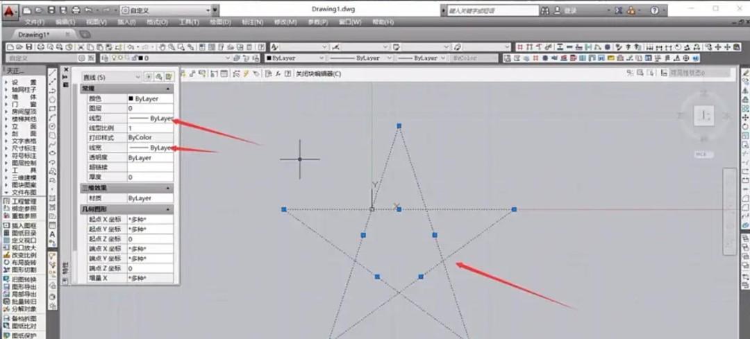 选中块内元素,按 Ctrl+1 打开特性面板,调整图层、颜色、线型等属性。