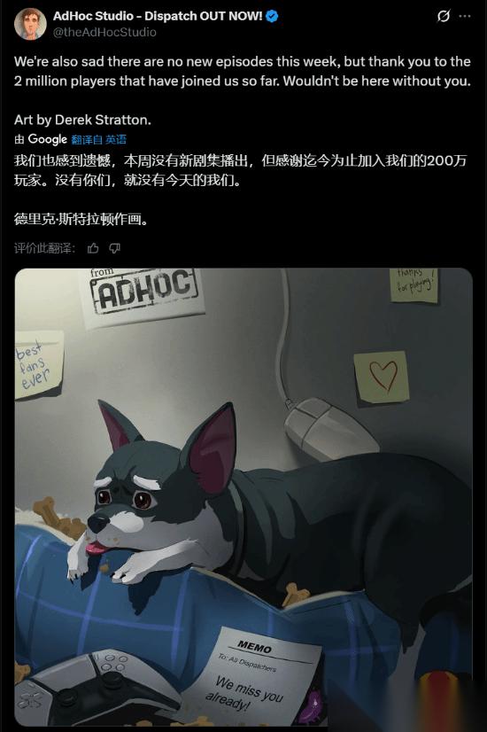 今日凌晨,AdHoc Studio通过社交媒体宣布,在游戏发售接近一个月之际,《超英派遣中心》的累计销量现已突破200万份。为纪念这一里程碑,游戏美术总监Derek Stratton特别创作了一幅全新画作,描绘了玩家最喜爱的角色Beef。画面情绪略带感伤,因为近日更新的第七与第八章已是游戏的最终章节,目前暂无推出新内容的计划。
