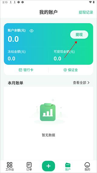 进入app账户页面下点击【提现】