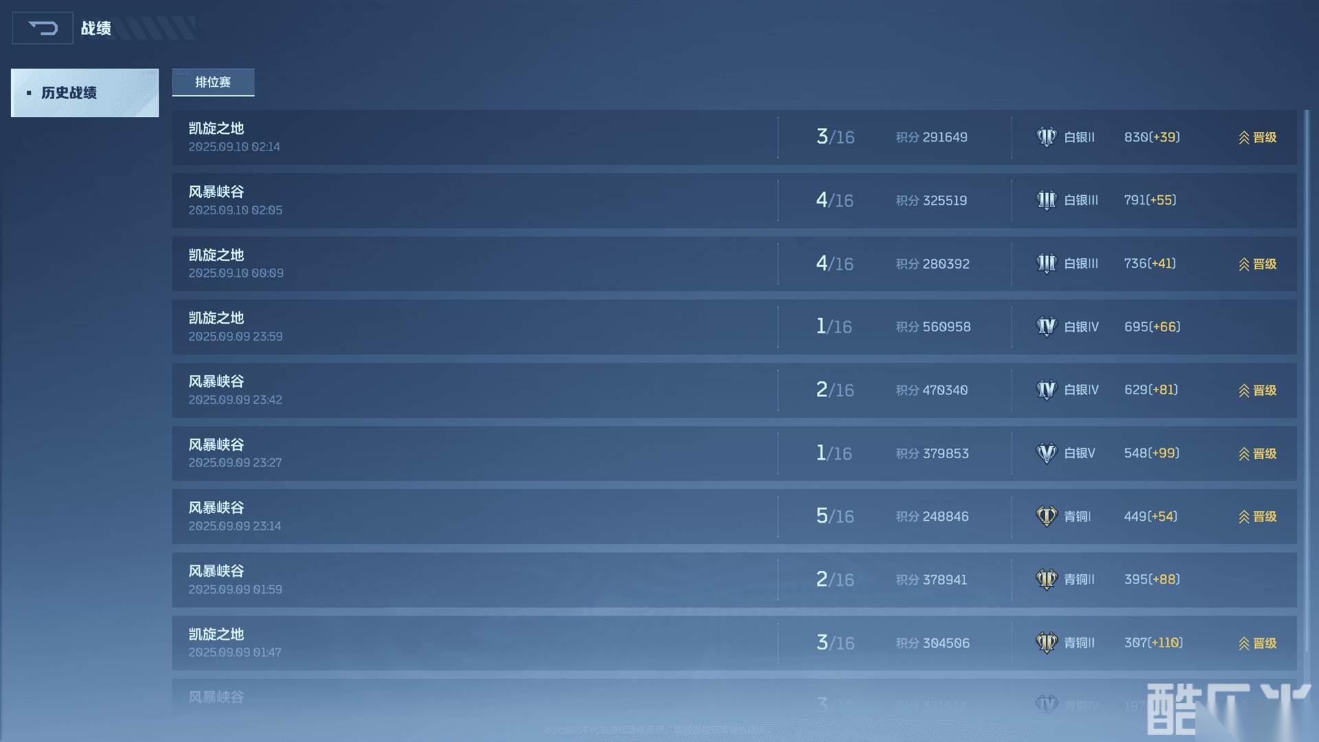 完成一局排位后,系统会根据你的表现(击杀数、排名、得分等)结算排位分。段位越高,排位分获取越难,在高分段(大师/战神),胜场加分有限,但输一局可能会掉很多分。